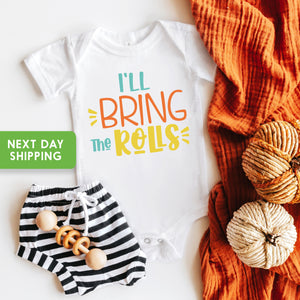 I'll Bring The Rolls OnesieĀ®, First Thanksgiving Baby OnesieĀ®, Funny Rolls Baby Bodysuit, 1st Thanksgiving, Fall OnesieĀ®
