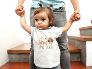 I'll Bring The Rolls OnesieĀ®, Funny Thanksgiving OnesieĀ®, First Thanksgiving Baby OnesieĀ®, Funny Rolls Baby Bodysuit, Fall OnesieĀ®