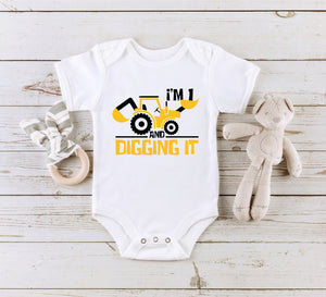 I'm 1 And Digging It, Construction Birthday Shirt, Construction Birthday Boy, One Year Old Construction Party, Construction OnesieĀ®