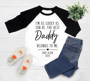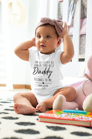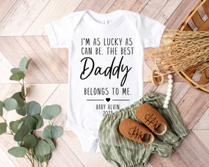 I'm As Lucky As Can Be The Best Daddy Belongs To Me OnesieĀ®, 1st Fathers Day Bodysuit, Custom Name OnesieĀ®, New Dad Gift