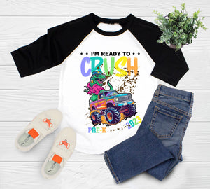 I'm Ready to Crush Pre-K Shirt, 1st Day of School Shirt, Ready to Crush Pre-K Monster Truck Shirt, Saurus Back to School Shirt Boy Girl
