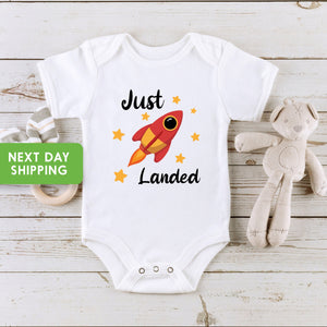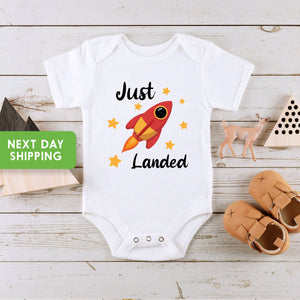 Just Landed Baby Bodysuit, Space Ship Baby Bodysuit, Astronaut Baby Bodysuit, Baby Shower Gift, Infant Astronaut, Funny Baby Bodysuit