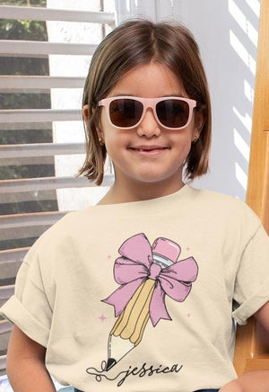 Kids Back To School Shirt, First Day Of School, Cute Pencil Bow Tees, Toddler Girls Shirt, Pencil Coquette Tee, Pencil With Bow Kids Outfits