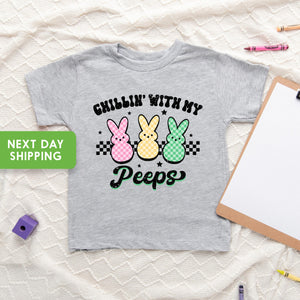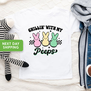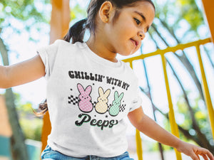 Kids Easter Shirt, Chillin' with My Peeps Kids Retro TShirt, Easter Retro Natural Infant, Toddler & Youth Tee, Kids Easter T-Shirt