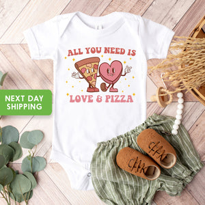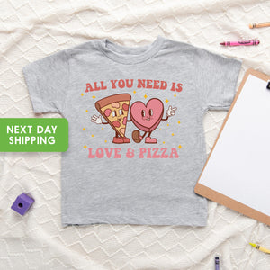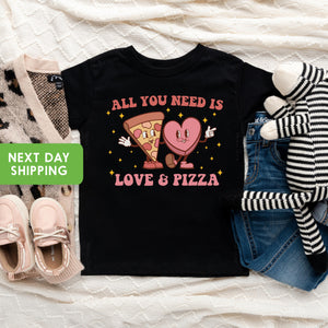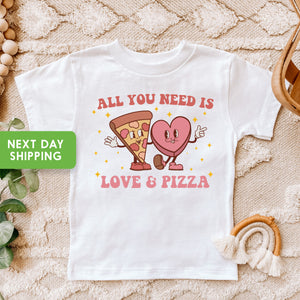 Kids Valentines Day Shirt, All You Need is Love and Pizza Kids Retro TShirt, Boho Valentine's Day OnesieĀ®, Valentine's Day Toddler Shirt