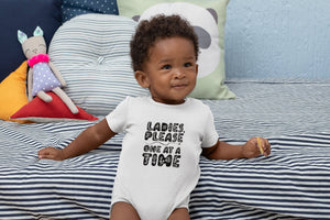 Ladies, Please One At A Time Baby OnesieĀ®, Funny OnesieĀ®, Baby Shower, Baby Boy, Newborn, Unique Gift, Baby Clothing, Toddler Shirt