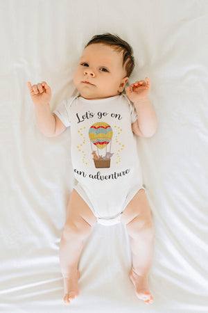 Let's Go On An Adventure OnesieĀ®, Hot Air Balloon Bodysuit, Zoo Baby Shower Gift, Boho Baby OnesieĀ®
