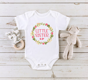 Little Sister Floral Onesie, Little Sister Baby Onesie, Little Sister Shirt Baby Gift, Littler Sister Raglan, Sister Toddler Shirts, Flowers