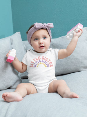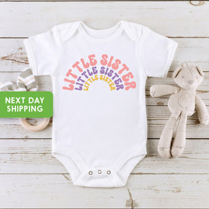 Little Sister OnesieĀ®, Retro Baby Announcement Bodysuit, Girls Baby OnesieĀ®, Second Pregnancy Announcement