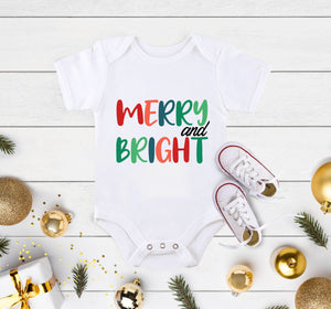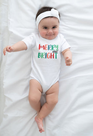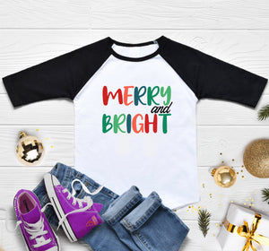 Merry and Bright Baby OnesieĀ®, Merry and Bright Shirt for Kids, Christmas Kids Shirt, Merry Christmas Shirts, Christmas Toddler Raglan
