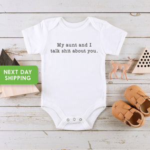 My Aunt And I Talk Shit About You OnesieĀ®, Funny Aunt Bodysuit, Retro Aunt OnesieĀ®, Aunt Gift, Inappropriate Baby OnesieĀ®, Baby Shower Gift