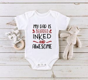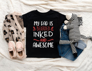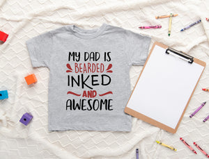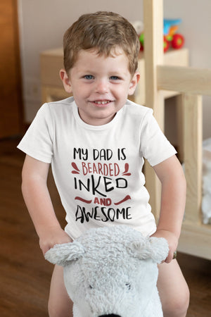 My Dad Is Bearded Inked And Awesome Shirt, Daddy Beard Shirt, Daddy Inked Tattoo Toddler Shirt