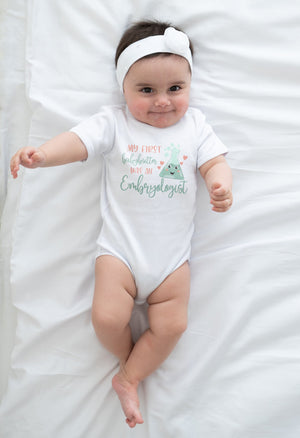My First Babysitter was an Embryologist Unisex Baby Bodysuit, IVF OnesieĀ® Baby Gift, Cute Baby Clothes, IVF Pregnancy Announcement OnesieĀ®