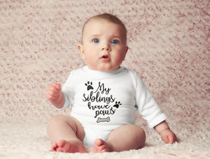 Home My Siblings Has Paws OnesieĀ®, Baby Announcement OnesieĀ®, Pregnancy Announcement OnesieĀ®, Baby Shower Gift, Dog Lover OnesieĀ®