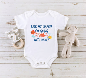 Pack My Diapers I'm Going Fishing With Daddy OnesieĀ® Baby OnesieĀ® Baby Shower Gift, Baby Boy Bodysuit, Cute Baby Bodysuit