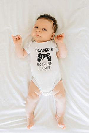 Player 3 Has Entered The Game OnesieĀ® Funny Pregnancy Reveal, Baby Announcement, Baby Xbox Bodysuit, Funny Baby OnesieĀ® Cute Baby Bodysuit