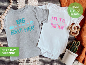 Pregnancy Reveal, Big Brother Little Sister Matching Sibling Set, Baby Shower Gift, Take Home Outfit, Matching Sibling Set