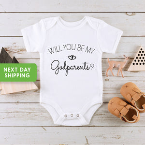 Pregnancy Reveal OnesieĀ®, Will You Be My Godparents?Baby OnesieĀ®, GodParent Shower Gift, Godmother Bodysuit, Godfather OnesieĀ®
