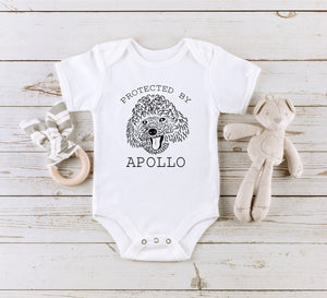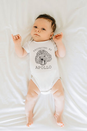 Protected By Dog OnesieĀ®, Custom Baby OnesieĀ®, Baby Announcement, Cute Sibling Bodysuit, Newborn Outfit, Baby Shower Gift, New Baby Reveal