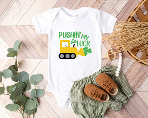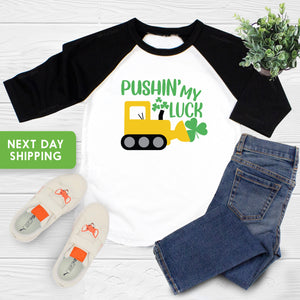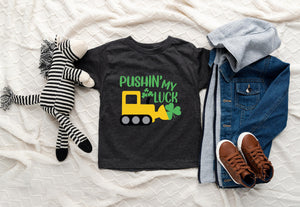Pushin' My Luck, St Patricks Day Digger Shirt, St Patricks Day Shirt, Boy Shirt, Clover, St Paddys Day, Toddler Shirt, Kids Shirt