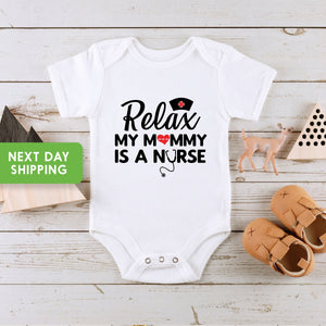 Relax My Mommy Is A Nurse Baby OnesieĀ®, Funny Mothers Day OnesieĀ®, Cute Baby OnesieĀ®, Mother's Day Gift, Mother's Day Shirt for Kids