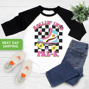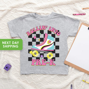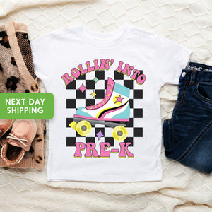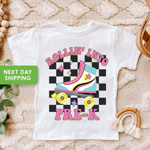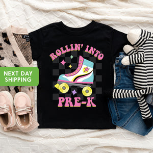Rollin Into Pre-K Kids Shirt, Pre-K Skating Toddler Tee, Roller Skate School Kids Shirt, Kids Back To School, Kindergarten Shirt For Girls
