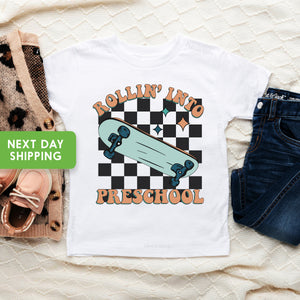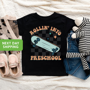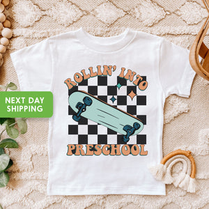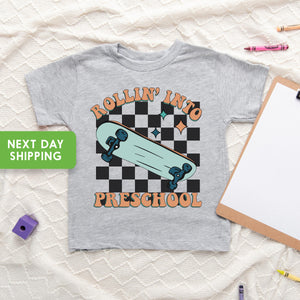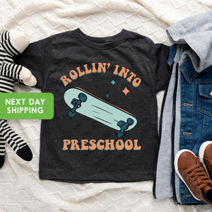Rollin Into Preschool Shirt, 1st Day Of School Toddler Tee, Skateboard Back To School Kids Shirt, Preschool Outfit, Back to School Gifts
