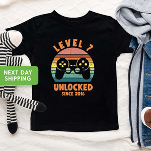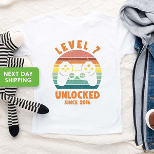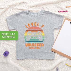 Seventh Birthday Video Game Shirt, 7th Birthday Gamer Baseball Tee, Level Seven Unlocked Birthday Shirt, Seventh Birthday Boy Baseball Tee