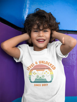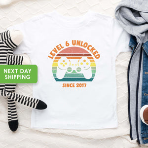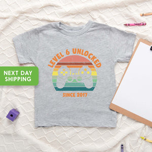 Sixth Birthday Controller Boy Shirt, Level Six Unlocked Birthday Baseball Tee, 6th Birthday Boy Gamer Shirt