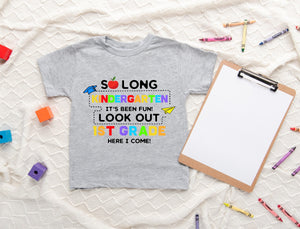 So Long Kindergarten Graduation, School Shirt, 1st Grade Here I Come, Graduation Kindergarten Tee, Kindergarten Shirt, Back To School Shirt