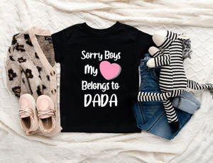 Sorry Boys My Belongs To Dada Shirt, Cute Girls Valentine Shirt, Girls Valentine Shirt