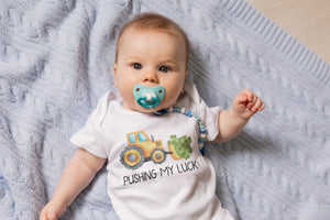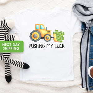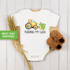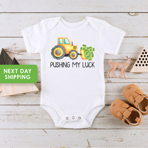 St. Patrick's Day Kids Shirt, Pushing My Luck Charm Baseball Shirt, Baby Boy St Patricks Day Irish OnesieĀ®, Cute Irish Baby St. Patrick Tee