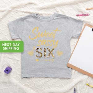 Sweet Sassy And Six Birthday Shirt, 6th Birthday Shirt, Girl Kids Leopard Shirt, Sweet Sassy&Six Animal Print, Sixth Birthday Gift