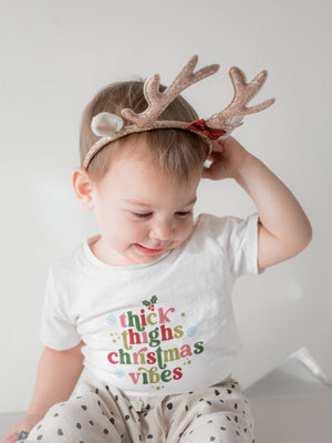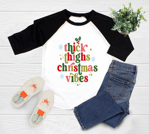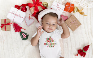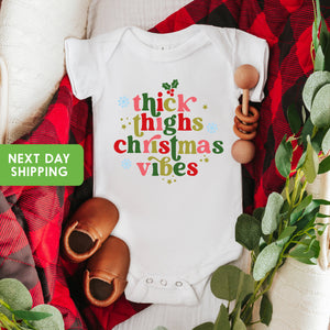 Thick Thighs & Christmas Vibes Baby OnesieĀ® Santa Holiday Shirt, Christmas Mistletoe Baby Boy Girl OnesieĀ® Kids Shirt