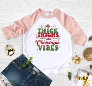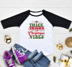 Thick Thighs Christmas Vibes OnesieĀ®, Funny Christmas Bodysuit, Cute Holiday Baby OnesieĀ®, Christmas Baby Gift, Christmas OnesieĀ®