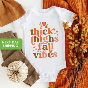 Thick Thighs & Fall Vibes Baby Girl OnesieĀ®, Thanksgiving OnesieĀ®, Autumn Baby OnesieĀ®, Baby OnesieĀ®, Fall Graphic OnesieĀ®