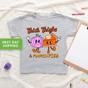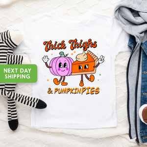 Thick Thigs Pumpkin Pies Halloween OnesieĀ®, Pumpkin Season Toddler Shirt, Trick or Treat Toddler Shirt, Retro Boho Halloween OnesieĀ®