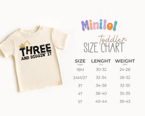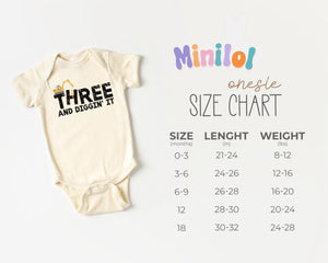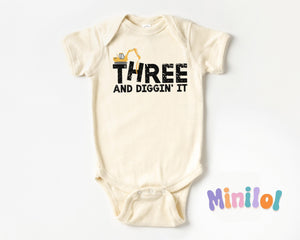 Three and Diggin' It OnesieĀ®, 3rd Birthday Shirt, Construction 3rd Birthday Tees, Truck Birthday, Excavator Birthday Shirt, Natural Bday Tee