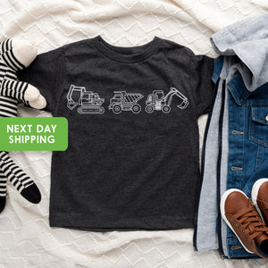 Three Construction Machines Kids T-Shirt, Truck Toddler Shirt, Excavator Kids Shirt