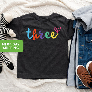 Three Shirt, 3rd Birthday Shirt, Three Years Old Birthday, 3rd Birthday Outfit, Heart Shirt, Baby Girl Shirt, Third Birthday Shirt