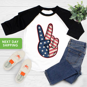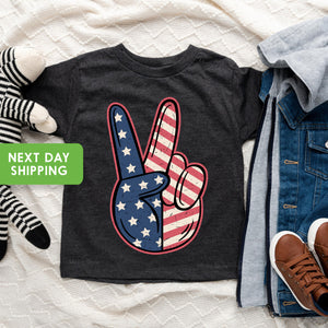 Toddler T-shirt, Peace Fingers 4th of July Memorial Day Kids TShirt, Retro Natural Infant, Toddler & Youth Tee