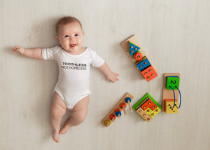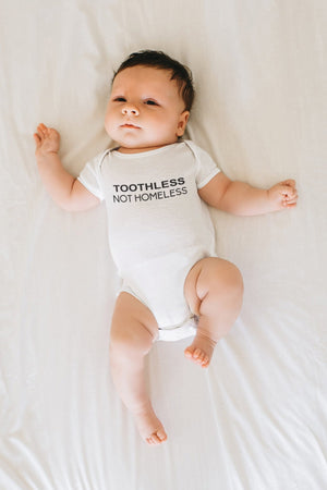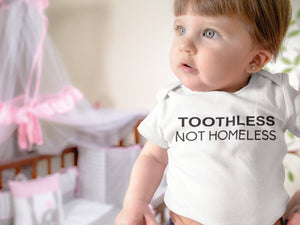Toothless not Homeless Baby OnesieĀ®, Funny Joke Gag Gift for Her, RHOBH, New Baby Gift, Baby Shower Gift, Funny Baby OnesieĀ®