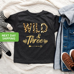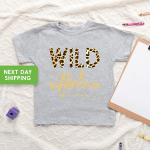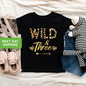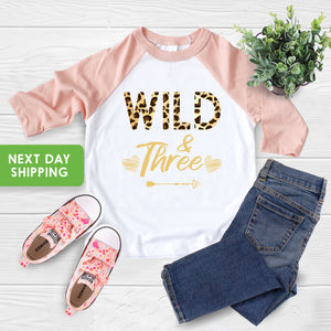 Wild And Three Birthday Shirt, 3rd Birthday Shirt, Girl Kids Leopard Shirt, Wild And Three Animal Print, Third Birthday Gift