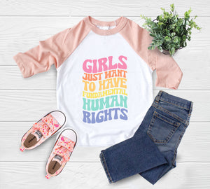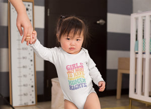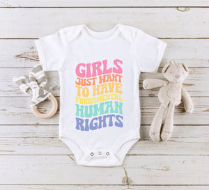 Women's Rights Baby OnesieĀ®, Retro Empowerment Baby Bodysuit, Girls Just Want To Have Fundamental Human Rights Natural Baby OnesieĀ®