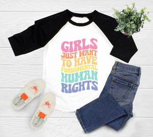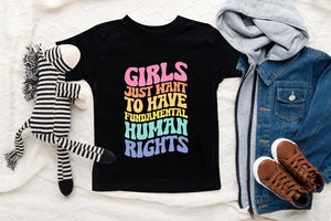 Women's Rights Toddler Shirt, Retro Empowerment Kids Shirt, Girls Just Want To Have Fundamental Human Rights Natural Toddler Shirt