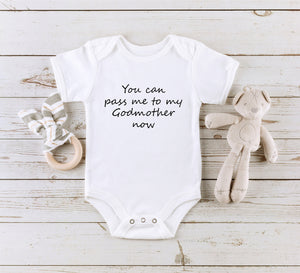 You Can Pass Me To My Godmother Now Baptism Onesie®, Gift From Godmother Onesie®, Godson Onesie®, Goddaughter Onesie®, Baptism Onesie®